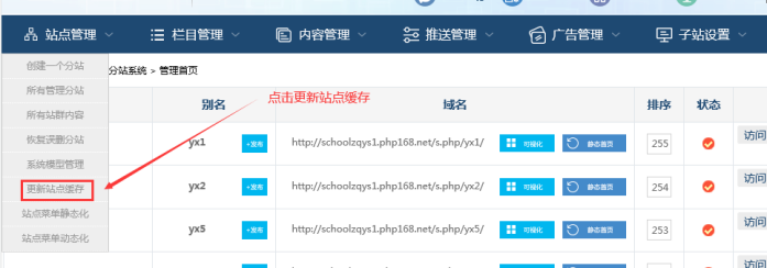 A:進入網站后臺-----點擊“一鍵緩存”-----點擊“一鍵更新網站所有緩存”