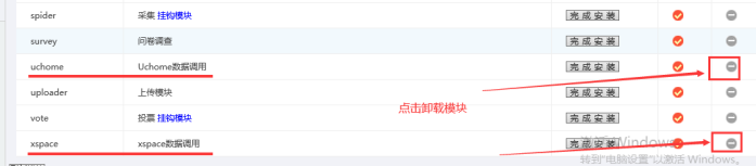 找到下面的兩個(gè)模塊,同樣也是點(diǎn)擊卸載