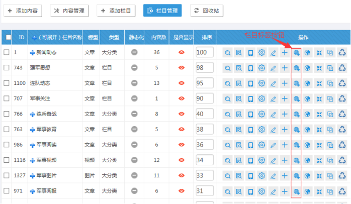 一、登錄網站后臺----進入欄目管理