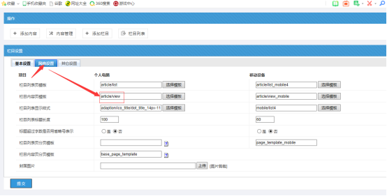 二丶處理方法是首先我們要知道這篇文章所屬欄目,然在在后臺編輯欄目(如圖三),查看它的內容頁模板是(如圖四)。