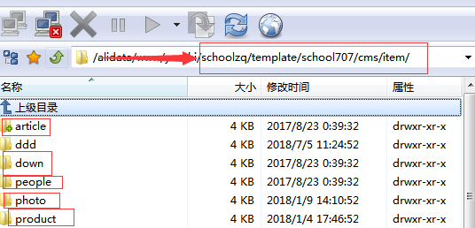 三丶我們通過ftp鏈接服務器(以下為linux為實例)進行修改,windows服務器通過遠程桌面鏈接,修改的路徑就是程序名稱/template/school707(模板名稱)/cms/item/article/view,html(如圖五和圖六)。