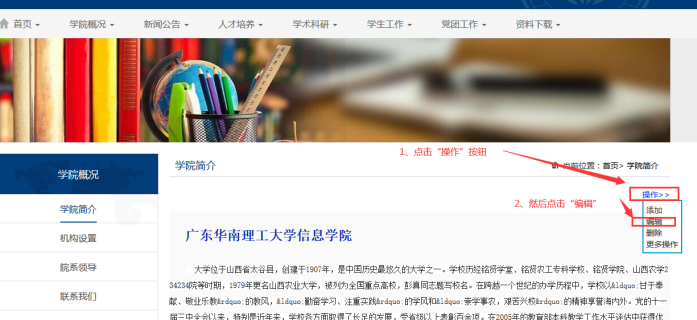 點(diǎn)擊頁面上的【操作】按鈕----點(diǎn)擊【編輯】按鈕
