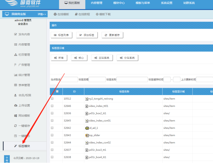 A:登錄網(wǎng)站后臺(tái)---點(diǎn)擊主站左邊的標(biāo)簽?zāi)K!