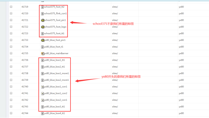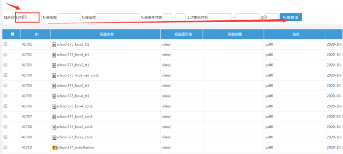 C:在標(biāo)簽?zāi)K里面---輸入這個(gè)站點(diǎn)別名,比如【yx80】------點(diǎn)擊標(biāo)簽搜索----可以看到這個(gè)站點(diǎn)的所有標(biāo)簽,這個(gè)時(shí)候,你可以查看是否有多余的。