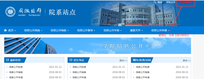方式B:進入子站后臺后----打開當前網(wǎng)站首頁(沒有做動靜態(tài)分離部署情況下)----點擊【顯示標簽】: