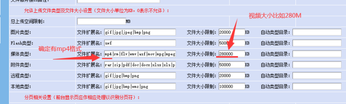 場景:如果不通過eweb編輯器。想系統(tǒng)默認(rèn)自帶的視頻模型或編輯器上傳視頻。就需要進(jìn)入網(wǎng)站后臺----系統(tǒng)設(shè)置----附件上傳里面。將總開關(guān)里面的附件格式和大小設(shè)置,比如視頻的mp4格式;然后對應(yīng)各個角色設(shè)置所需上傳的視頻和大小。