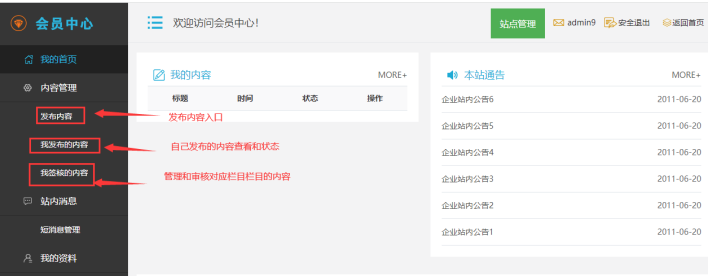 對本站點的欄目、菜單、內容、設置、橫幅替換、網站名字等所有進行管理。僅限超級管理員才有權限進去。