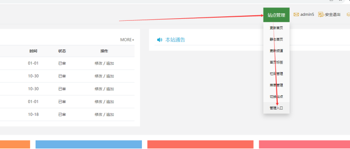 打開統(tǒng)一登陸入口------點擊各子站的【會員中心】入口------鼠標放在【站點管理】按鈕上-----點擊【管理入口】: