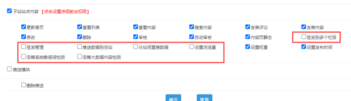E、勾選需要管理的欄目(直接勾選前面的全選快捷按鈕)