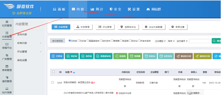 C、登陸會員中心后--------點擊【內容】------【內容管理】: