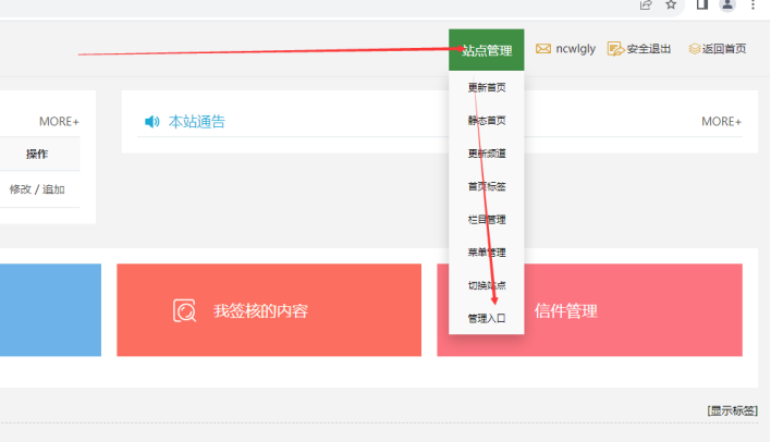 B、登陸會員中心后--------點擊站點管理----管理入口:
