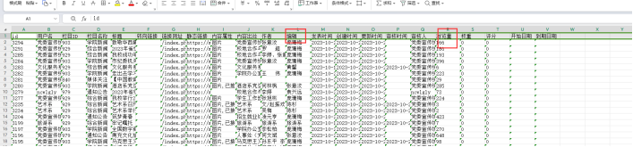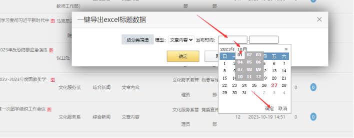 D、點擊【一鍵導出excel標題數據】------選擇【文章內容】-----選定日期段---點擊確認: