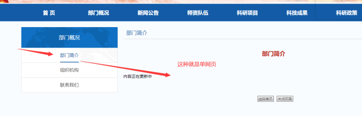 我們經常碰到一種現象,就是一個欄目就是一篇內容,并且用途廣泛,比如【單位介紹】、【聯系我們】。這個就需要用到【單網頁】模型,單網頁的效果如下: