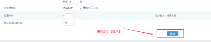 提交:最后點擊【提交】,表示創建好了一個新的文章類型的欄目。