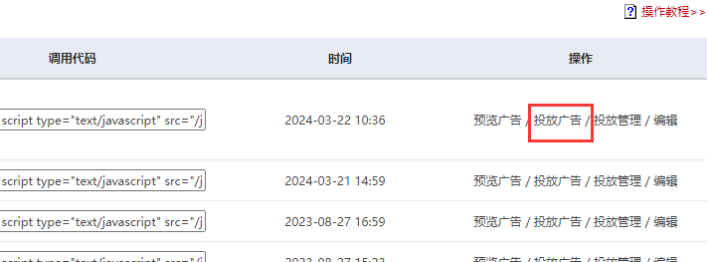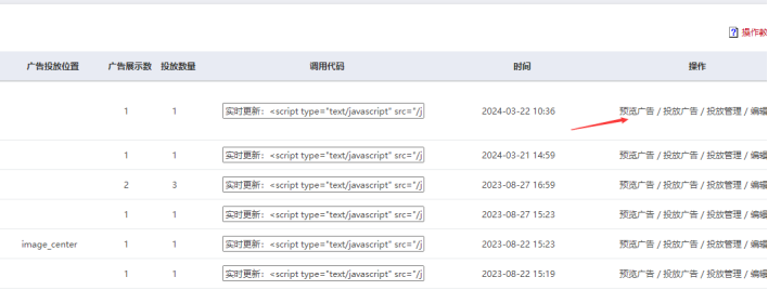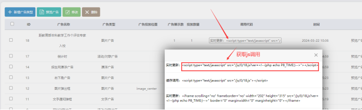 6、回到廣告列表-----鼠標點擊這個位置,彈出框中,復制第一個js