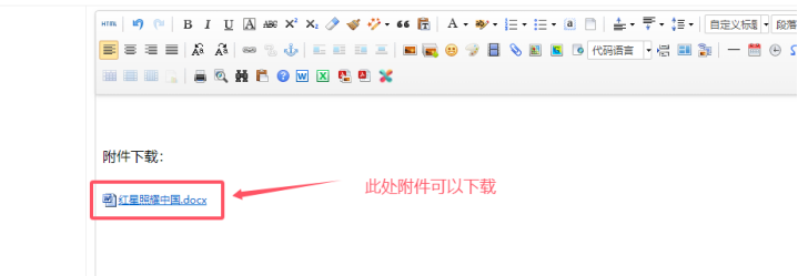 支持上傳zip、doc、docx、xls、pdf等各種附件,這些附件都是以下載模式出現: