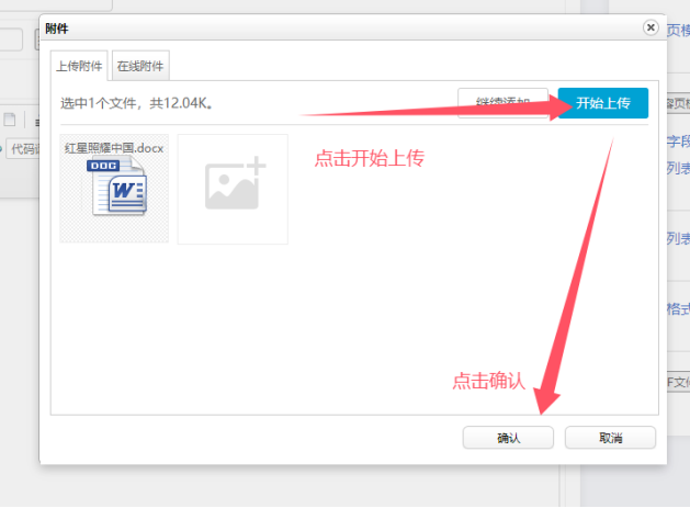 B、然后點擊【開始上傳】按鈕-----點擊【確認】