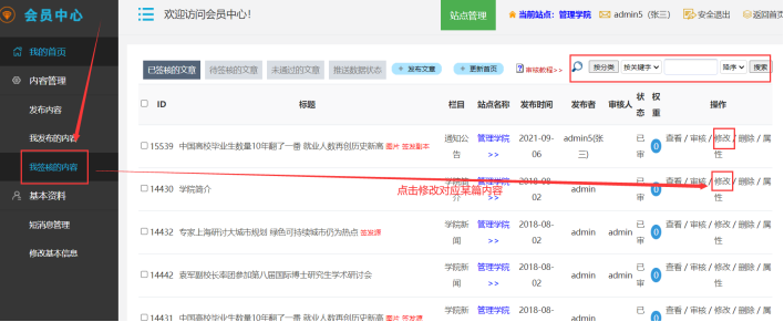 A、點(diǎn)擊【我簽核的內(nèi)容】-------點(diǎn)擊某篇內(nèi)容【修改】