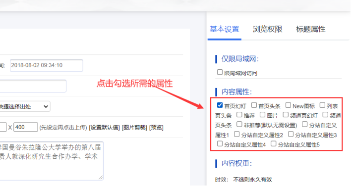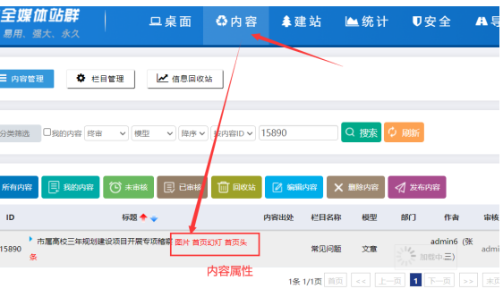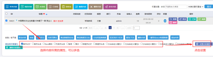 有時(shí)候我們管理員需要對(duì)某些內(nèi)容進(jìn)行網(wǎng)站頭條、幻燈片、推薦等屬性設(shè)置。就可以用到這個(gè)功能,這個(gè)需要事先管理員對(duì)模板位置先進(jìn)行標(biāo)簽設(shè)置調(diào)用,用來(lái)調(diào)用顯示哪些屬性的內(nèi)容。