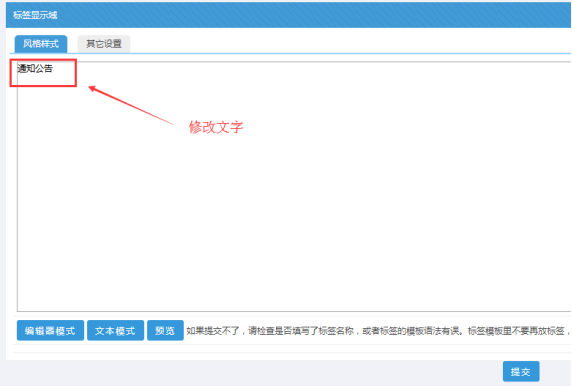 填寫或修改你所需的文字(如果帶有樣式,樣式務必不能修改,也不能少符號,否則網站會出錯)----點擊提交: