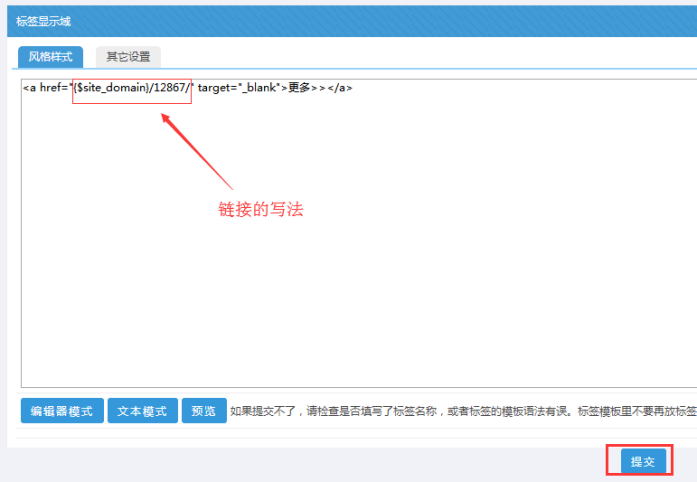 二級域名靜態鏈接寫法:比如 <a href="{$site_domain}/19107/" target="_blank">更多>></a>