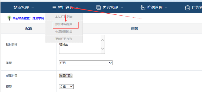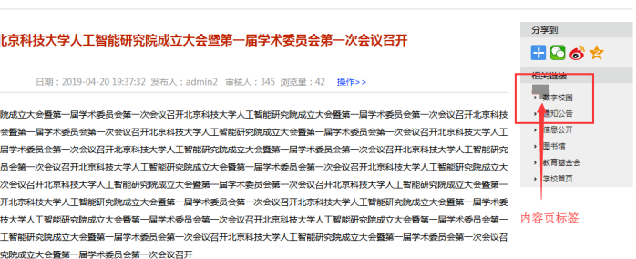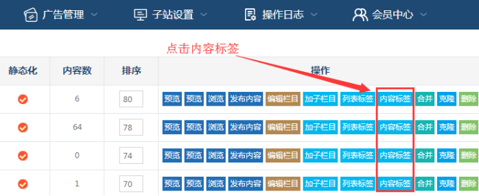 站群后臺---點擊欄目管理-----點擊“內容標簽”