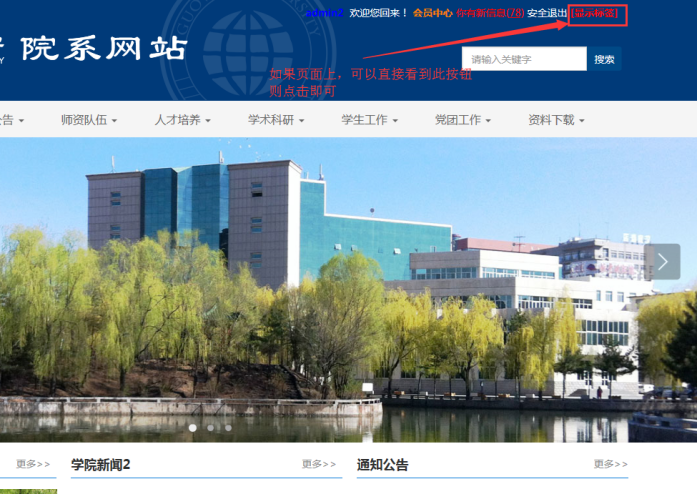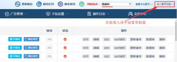 登錄后-----進入站群后臺----點擊“進入首頁標簽”按鈕-----即可看到藍色標簽塊!