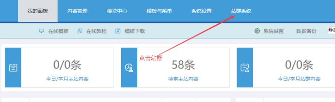 超級管理員在系統后臺,點擊“站群系統”按鈕!