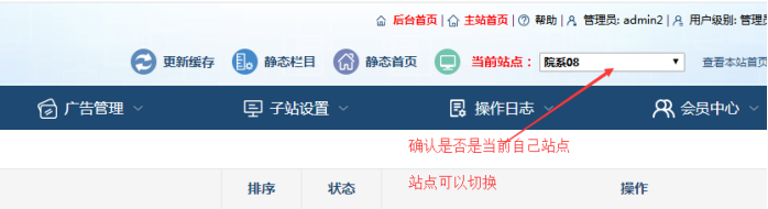 如果超級管理員,是管理所有站點,就需要確認是不是自己現在所需站點;站點可以切換!