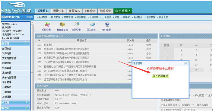 I、后臺路徑是admin.php如下;然后點擊更新網站緩存