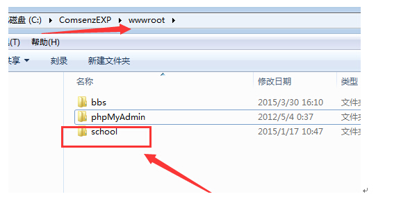 進入套件的這個wwwroot目錄,將國微網站程序代碼放到一個自己任意創建的文件夾里面,我們創建命名為school,最好是便于自己記憶 的