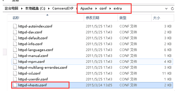 A、進入此路徑,用記事本打開httpd-vhosts.conf 文件