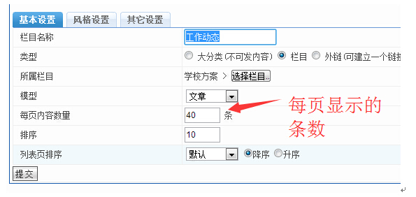 基本設(shè)置---每頁顯示內(nèi)容數(shù)量的設(shè)置,一般默認(rèn)即可,可以自己調(diào)整