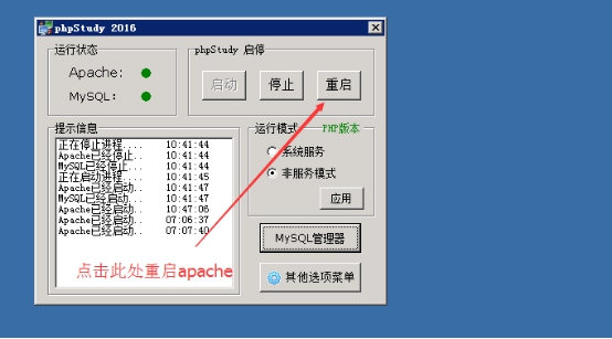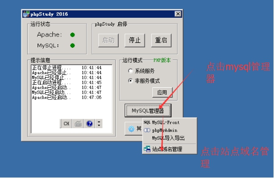第二個紅框里面是程序存放的目錄,phpstudy的環境默認確定所有網站程序必須都放在www下的目錄下。